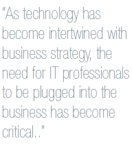As technology has become intertwined with business strategy, the need for IT professionals to be plugged into the business has become critical. Similarly, business professionals must understand how IT can improve business results. Being plugged in, or connected, is all about knowledge, trust and working together.